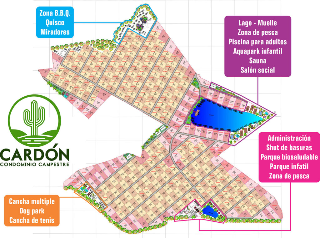 Bienvenido a Cardón condominio campestre el proyecto perfecto para vivir la tranquilidad del campo a solo 5 minutos del casco urbanos del municipio del Carmen de Apicalá, será una parcelación con 345 lotes desde 1.000 m2 en un terreno con topografía mixta y dos hermosos lagos los cuales ofrecen una hermosa vista, todo esto complementados con zonas sociales para toda la familia. Cardón condominio campestre se construirá en la zona de rural a 3 km del parque principal de Carmen de Apicalá, por la vía que conduce a la vereda Mortiño.